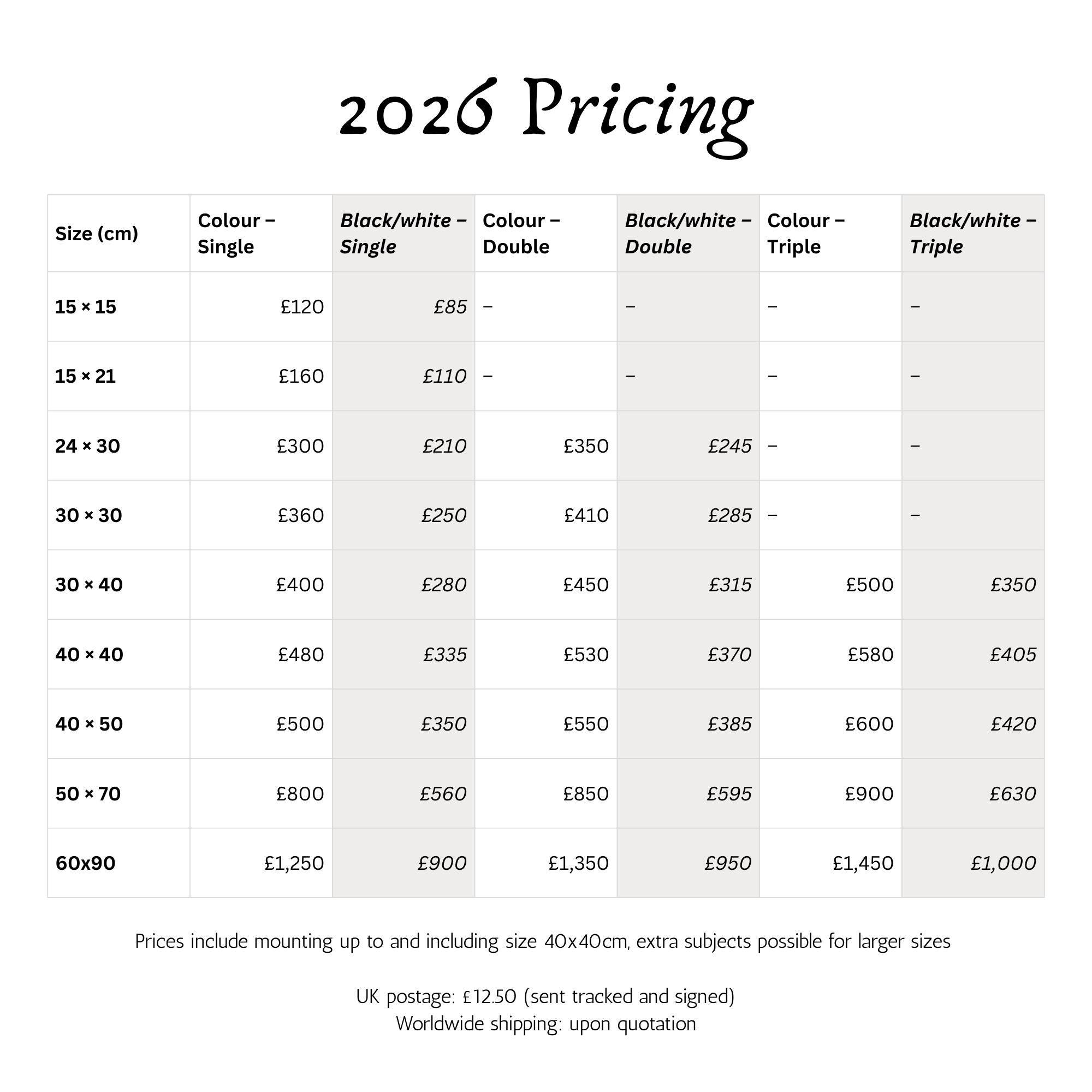 - a 25% non-refundable deposit secures your place in Charlie’s diary. The remaining balance is due the month you'd like the drawing for.