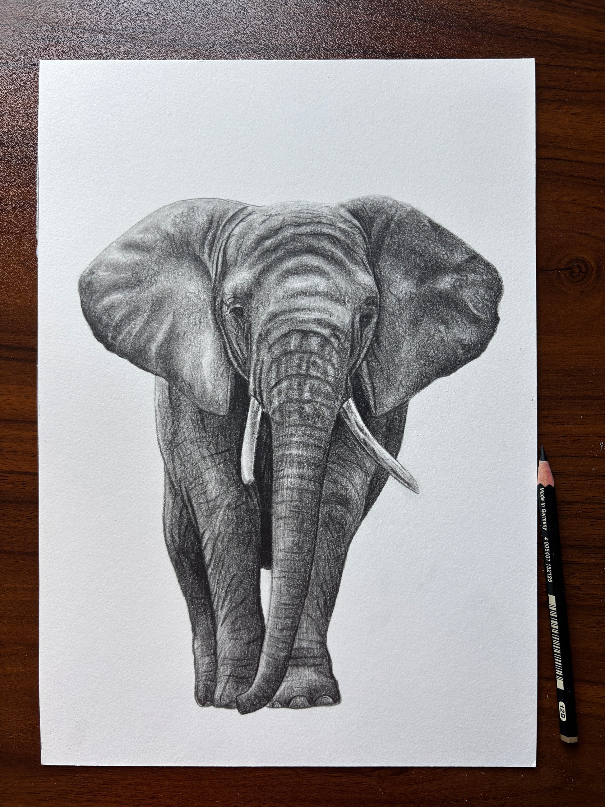 Hand-drawn on A4 (21 x 30 cm) high-quality paper, the artwork showcases subtle shading and textures that bring out the natural beauty and character of this elephant.